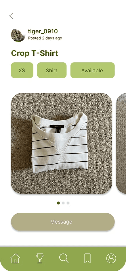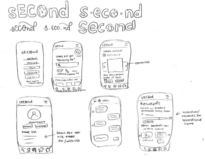 Second is a sustainable second-hand swap app designed to help users trade reusable goods instead of throwing them away. Built primarily for high school students, it encourages everyday reuse through a simple listing-and-chat flow that makes swapping fast and approachable. In this project, I designed the mobile experience from concept to prototype with a focus on reducing waste, supporting community donation, and making second-hand exchange feel rewarding rather than inconvenient. My goal was to lower the barrier to trading by streamlining item discovery and communication, while reinforcing sustainable behavior through features like local donation center search and a rewards system.